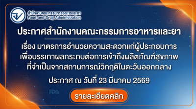 มาตรการอำนวยความสะดวกแก่ผู้ประกอบการวัตถุเสพติด เพื่อบรรเทาผลกระทบจากสถานการณ์วิกฤติในตะวันออกกลาง